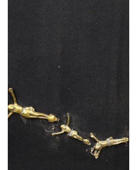 Całość oprawiona jest solidnie w dużą, ciężką ramę. Rysy na ramie, które widać na zdjęciach, są powierzchowne podobnie jak zabrudzenia na płycie, do której mocowane są Chrystusy. Wszystko łatwo da się wyczyścić lub zamaskować.