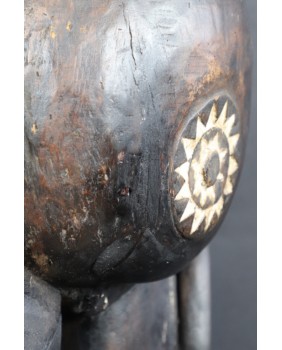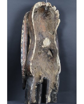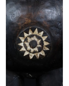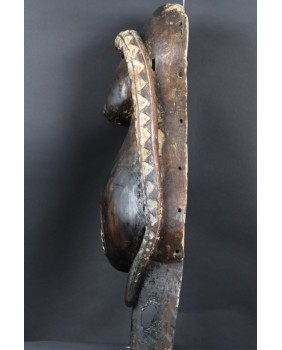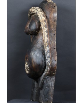 Ciążową maskę, którą tu oferuję nosi się na brzuchu, łącznie z maską twarzową i strojem z trzciny zasłaniającym tancerza. Maski używano podczas maskarady kończącej inicjację, bardzo ważny etap wychowania zarówno dziewcząt jak i chłopców. Ponieważ maskarada jest domeną sztuki zastrzeżoną wyłącznie dla mężczyzn, mężczyźni w tańcu odtwarzają postacie kobiet. W przesadny, gwałtowny sposób odgrywają bóle porodowe towarzyszące kobietom podczas połogu.