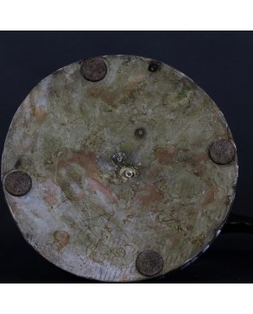 Rzeźbę kupiłem w Paryżu. Nie pamiętam dokładnie miejsca, był to prawdopodobnie jeden z ulicznych paryskich targów. Rzeźba nie jest sygnowana i bardzo żałuję, że nie udało się zidentyfikować autora. Myślę, że powstała w drugiej połowie XX wieku. Okrągła malowana podstawa doskonale harmonizuje z rzeźbą, stanowi wartość dodaną kompozycji.