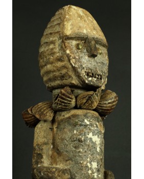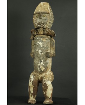 Relikwiarze Mbete są rzadkie. Mnie udało się kupić taką rzeźbę po raz pierwszy. Sądzę, że powstała w drugiej połowie XX wieku. Jest w dobrym stanie. Ma 64 cm wysokości, 16 cm szerokości i 16 cm głębokości.