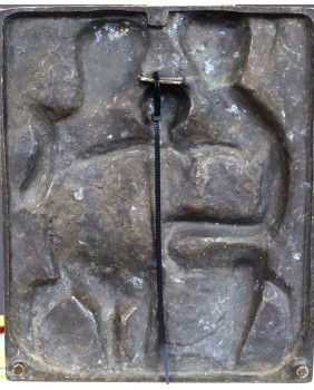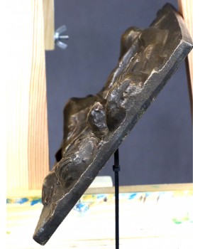 Nieduża jej wymiar to 16 na 20 cm. Wykonana z brązu, ma ładne, podkreślające głębię patyny.