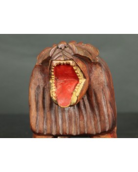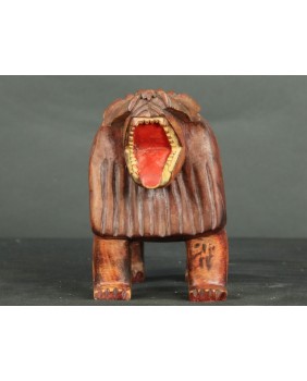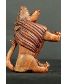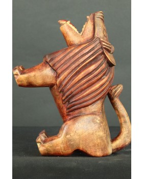 Ma jednak w sobie pierwiastek autentycznych etnicznych afrykańskich rzeźb, z charakterystycznymi deformacjami podkreślającymi, najważniejsze części rzeźby. W tym przypadku, okolony grzywą łeb, który zajmuje prawię połowę rzeźby.