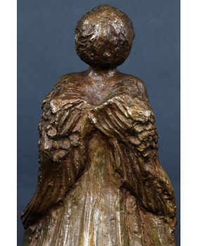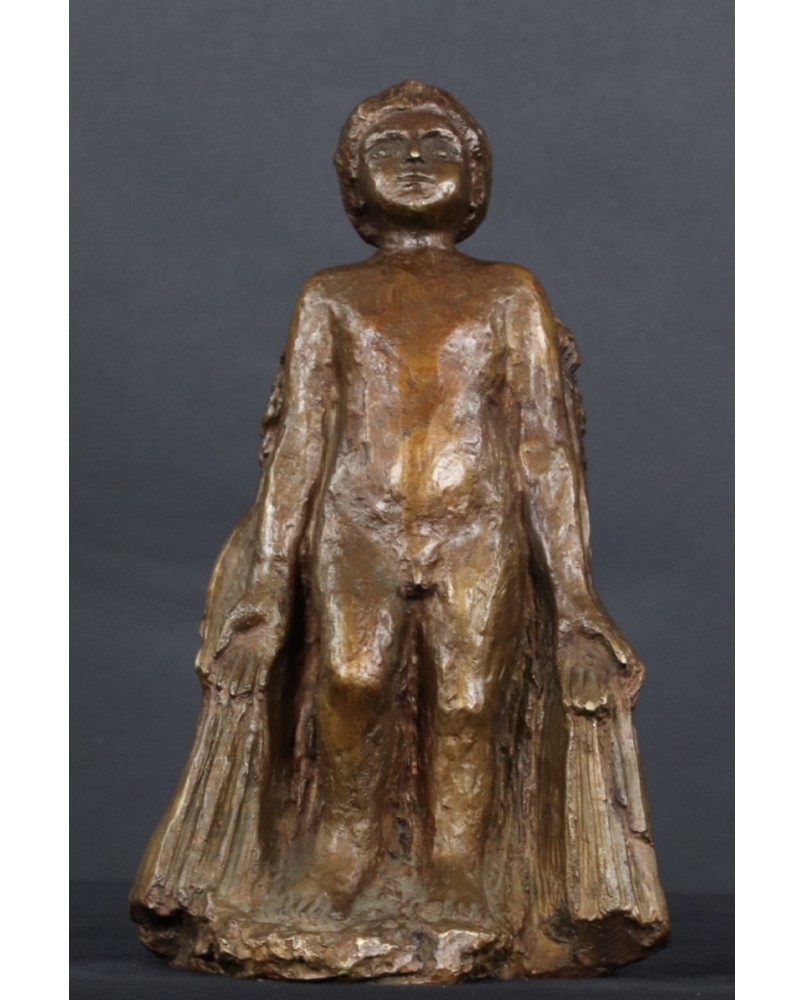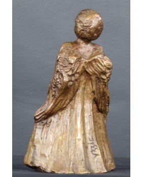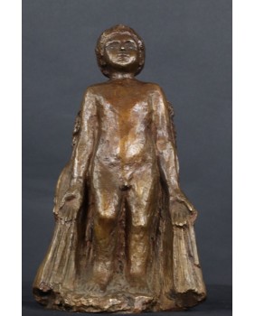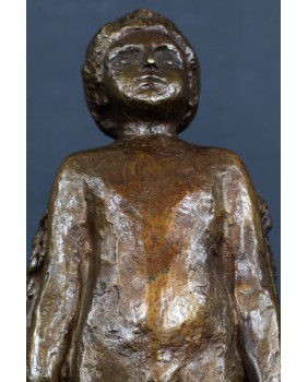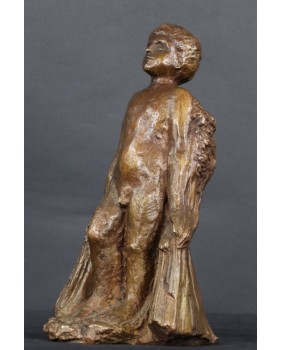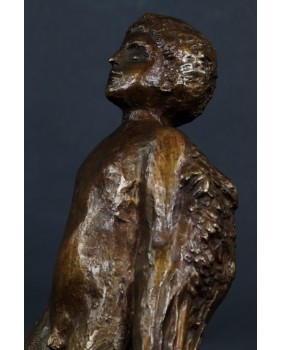 Rzeźba, którą oferuję przedstawia zapewne Ikara. Nie znam zamierzeń artystycznych autora ale moim zdaniem ten chłopiec nigdzie nie poleci. Ma nadwagę, brak mu determinacji i odwagi. Jego marzenia o locie w przestworza skończyły się zanim się zaczęły. Lot skazany jest na katastrofę mimo potężnych skrzydeł złożonych za plecami.