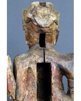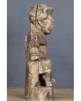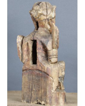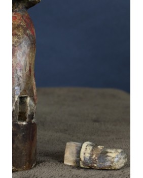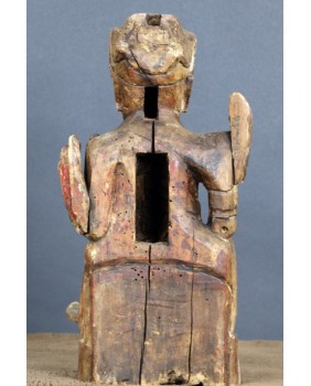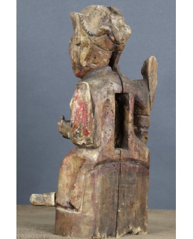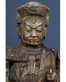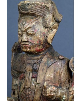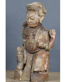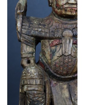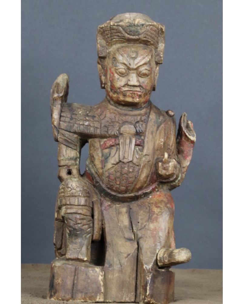 Mam kłopot z precyzyjnym określeniem kogo rzeźba przedstawia. Jedna z wersji, która może być prawdopodobna, mówi, że jest to taoistyczne bóstwo. Dopuszczam taką możliwość. Bardziej przekonuje mnie jednak opcja, że rzeźba przedstawia przodka. Sądząc po groźnej minie i zbroi przedstawia wojskowego, być może pełniącego dowódcze funkcję. Szkoda, że nie zachowały się żadne atrybuty postaci. Wówczas nie byłoby żadnych wątpliwości. Rzeźba została wykonana jak sądzę w XIX wieku. Jej jakość nie rzuca na kolana ale mieści się w standardzie tego typu rzeźb. Były przeznaczone do domowego zacisza, miały znaczenie tylko dla domowników, nie wystawiano ich na widok publiczny.