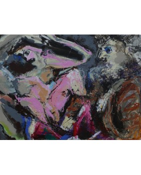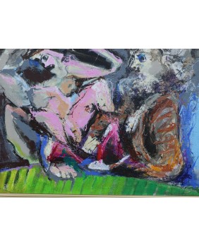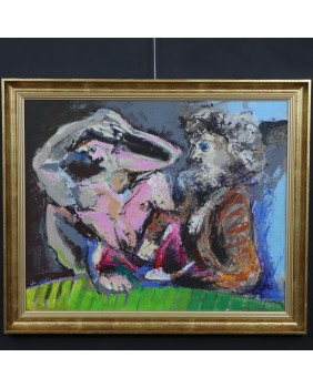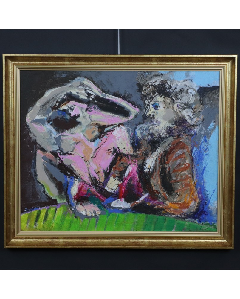 Obraz, który proponuję to malarstwo Picza jakie lubię. Nawiązuje do litografii Picassa z Teki Vollarda. Zresztą temat relacji twórcy z modelką pojawiał się także w dawnych obrazach Picza. Kocham kolory, których użył artysta, wymagały odwagi a przecież tworzą doskonałą kompozycję.