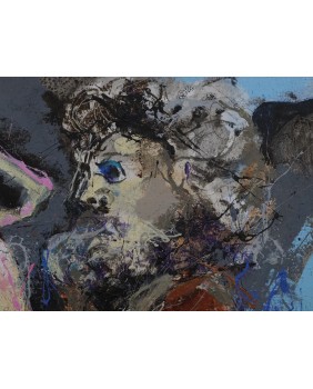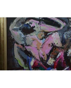 Obraz wraz z ramą ma wymiar 70 na 59 cm. Wymiar blejtramu to 61 na 51 cm.