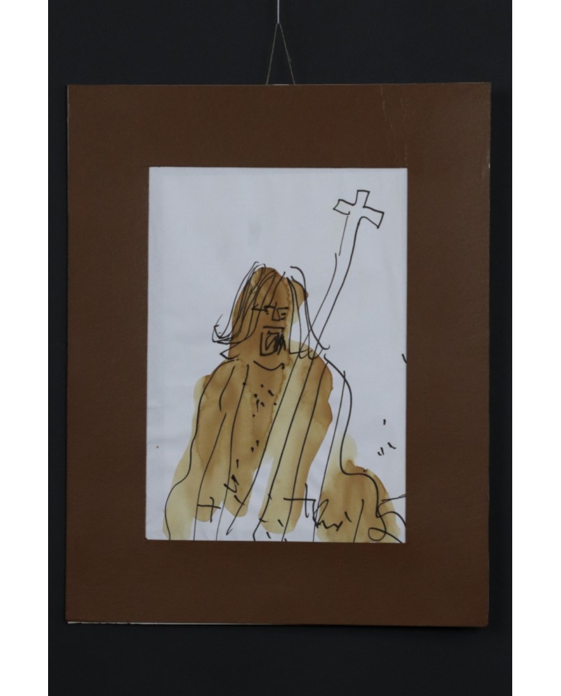 Nie do końca wiadomo, że przedstawiona postać to Chrystus. Na pewno jakiś święty. Ta postać z krzyżem pojawia się w pracach Marka Modela bardzo często. W tym przypadku jest ukazana bardzo oszczędnie, minimalistycznie niemal jeśli porównamy z tym co dzieje się na innych rysunkach artysty.