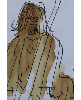 Na nieco więcej pozwalał sobie w swoich rysunkach. Powstawały szybko, pośpiesznie. Kreska tworzyła kontury postaci by zaraz je zgubić i zamazać. Myślę, że zaczynając rysunek, artysta nie miał pojęcia „czym to się skończy”. Nieodmiennie w jego rysunkach pojawiała się postać ludzka wyposażana w rozmaite atrybuty. One ją określały i decydowały kim jest.
