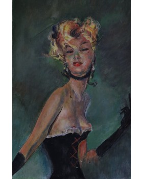Jean-Gabriel Domergue(1889-1962) był niezwykle zdolny. Już w wieku 17 lat wystawiał wśród wielkich na Salonie Francuskim. Mając 20 lat otrzymał Prix Rome, bardzo prestiżową nagrodę artystyczną. W latach dwudziestych zajął się portretem. Stworzył własny, nieco manierystyczny styl przedstawiania kobiet. Malował bardzo szczupłe, wiotkie sylwetki, pełne sexapilu. Był portrecistą rozchwytywanym przez kręgi arystokratyczne i artystyczne. Namalował ponad 3000 portretów kobiet. Projektował kreacje dla znanych domów mody.