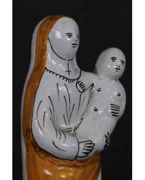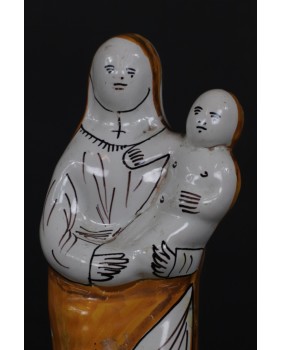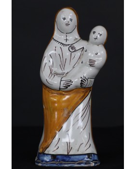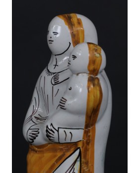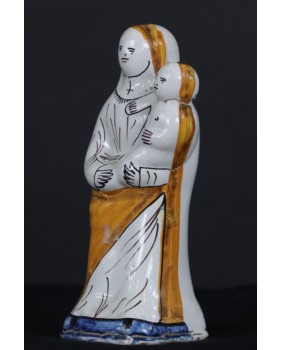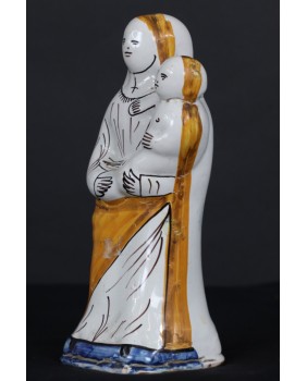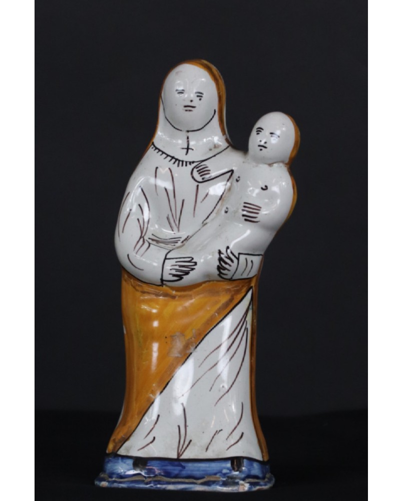 To przedstawienie „Madonny z dzieciątkiem”, wykonane z fajansu, funkcjonuje w sztuce religijnej Francji, w prawie niezmienionej formie od XVIII wieku.