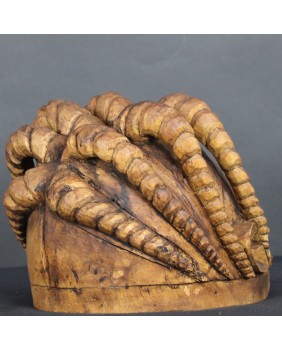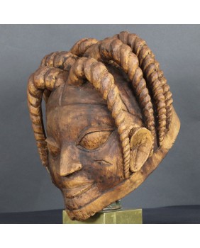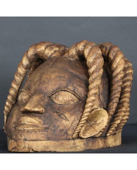 W masce, którą oferuję można też odnaleźć podobieństwo do brązowych głów z Ife, odnalezionych podczas wykopalisk. Podkreśla to ciągłość i bogactwo sztuki Jorubów. Maska nie jest stara. Myślę, że co najwyżej ma trochę ponad 20 lat. Trzeba jednak pamiętać, że festiwal Gelede został wpisany na listę Światowego Dziedzictwa Kulturowego UNESCO. Odbywa się do dnia dzisiejszego. Może to więc być przypadek, gdy stosunkowo młoda maska, zalicza się do kategorii ”art tribal” bowiem została wykonana na potrzeby plemiennych uroczystości.