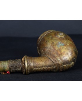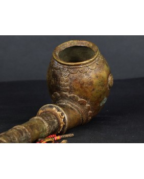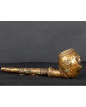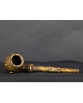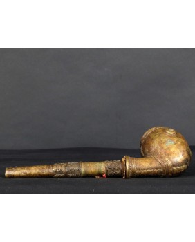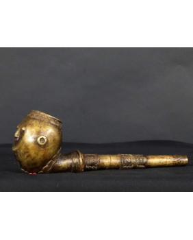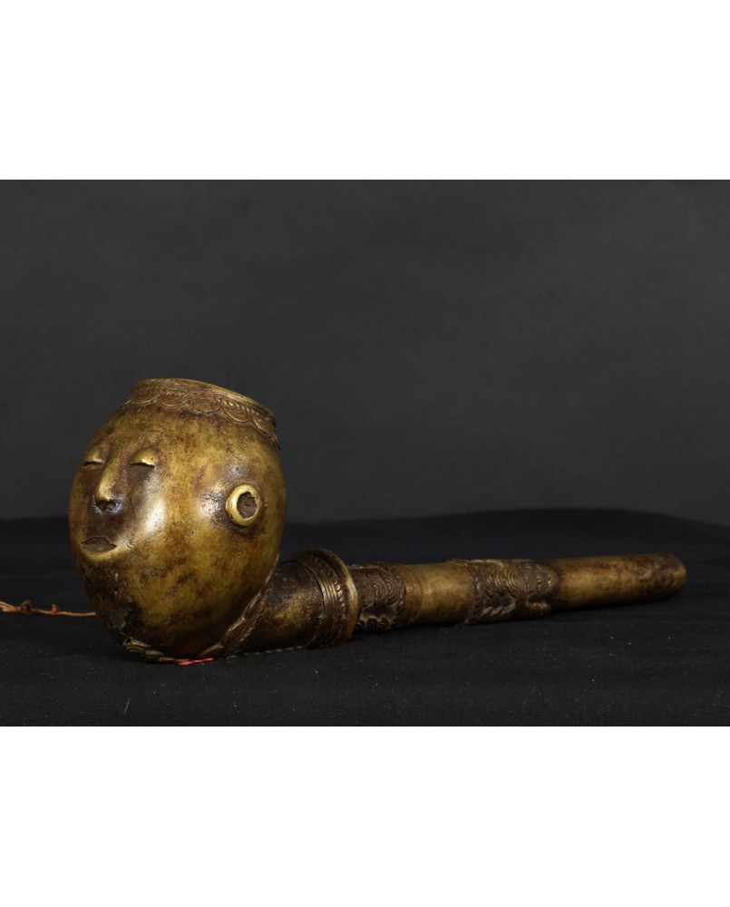 Fajka jest nietypowa dla Afryki. Jest skromna a większość afrykańskich fajek z brązu jest symbolem bogactwa i prestiżu. Natomiast geometryczne motywy zdobiące fajkę są dla Afryki charakterystyczne. Jest stosunkowo mała. Ma 29 cm długości i 8 cm szerokości. Średnica główki to 5 cm. Ma ładne patyny.
