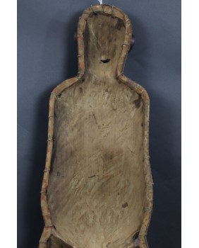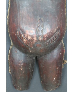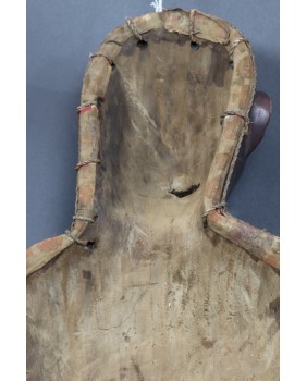 Sądzę, że maska pochodzi z końca XX wieku. Jest bardzo duża ale jednocześnie bardzo lekka. Dałoby się w niej łatwo tańczyć. Ma 99 cm wysokości, 32 cm szerokości i 20 cm głębokości.
