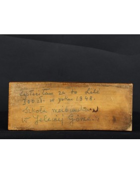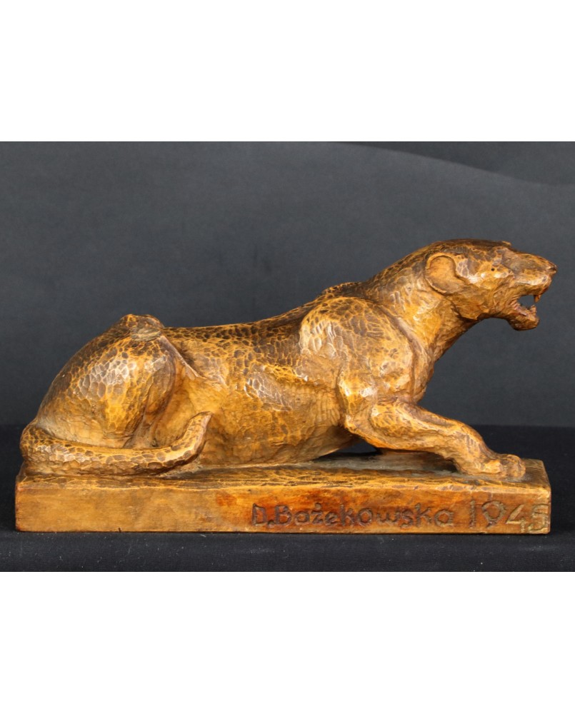 Lwicę kupiłem na warszawskim Kole. Rzeźba pokazuje jak perfekcyjnym warsztatem dysponuje artystka co nie zawsze dało się dostrzec w jej stylizowanych rzeźbach ceramicznych. Ciekawostką jest też adnotacja na spodzie. Wskazuje na związki artystki ze Szkołą Snycerki i Rzeźby w Cieplicach koło Jeleniej Góry zupełnie pomijane w jej biografii.