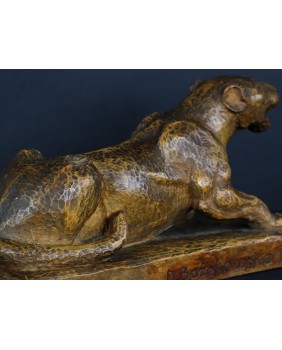 Lwica ma 22,5 cm długości, 11,5 cm wysokości i 9 cm szerokości. Lwica siedzi na podstawie będącej integralną częścią rzeźby o wymiarach 22 na 9 na 2 cm.