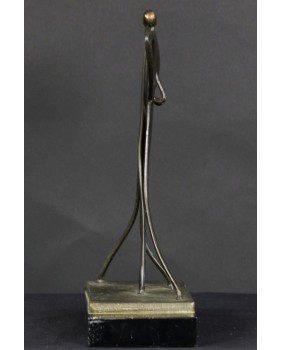 Rzeźba wykonana jest z białego brązowionego metalu. Ma 25 cm wysokości, 14 cm szerokości i 7 cm głębokości. Stoi na kamiennej podstawie o wymiarach 18 na 8 na 2 cm.
