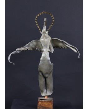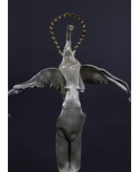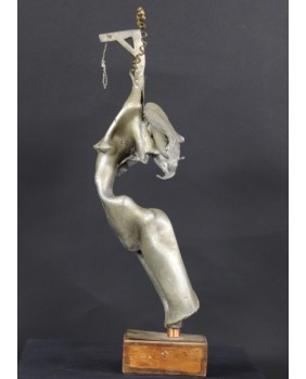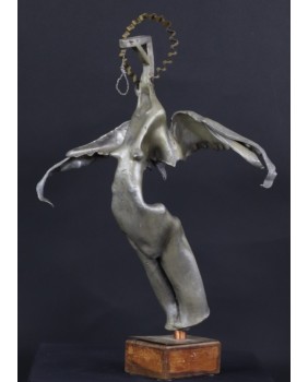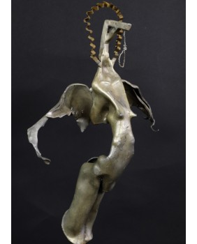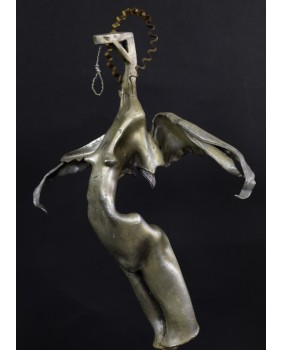 Czysty surrealizm, którego moim zdaniem, nie powstydziłby się sam Salvador Dali. Takie skojarzenie towarzyszy mi gdy patrzę na rzeźbę Jiri Fuska. Według interpretacji, która mi się nasuwa, rzeźba nawiązuje do Archanioła Gabriela. Artysta przekornie zastąpił miecz, atrybut Archanioła, który jest w jego ręku narzędziem zemsty i kary, szubienicą. To odniesienie do czasów współczesnych. Dziś nikogo się nie ścina. Karę, w świetle prawa wymierza się wieszając złoczyńców. A przynajmniej tak działo się do niedawna.