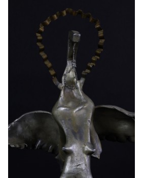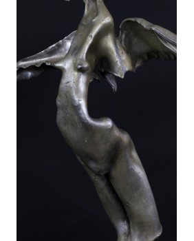 Wszystko w tej rzeźbie mi się podoba. Użycie nieoczywistych materiałów, uformowanie ich w zadziwiające, wijące się linie skrzydeł a nawet to że artysta wyposażył anioła w płeć, kobiece piersi i obfite biodra, które dla mnie( mam nadzieję, że nie jestem zboczony) mają wyraźnie erotyczne zabarwienie.