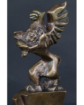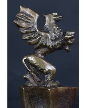 Ten gryf to zakup trochę sentymentalny. Lubię przedstawienia tego skrzydlatego lwa z głową orła. Zawsze chciałem kupić taką rzeźbę lecz nigdy jakoś się nie składało. Zwykle na przeszkodzie stała wysoka cena a także fakt, że to bardzo rzadka rzeźba, niewiele ich pojawia się w handlu. Dużo częściej gryf występuje w malarstwie a najczęściej w heraldyce.