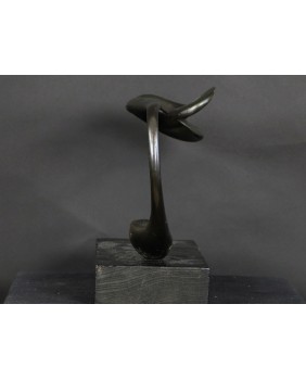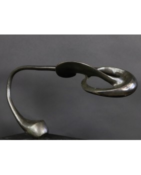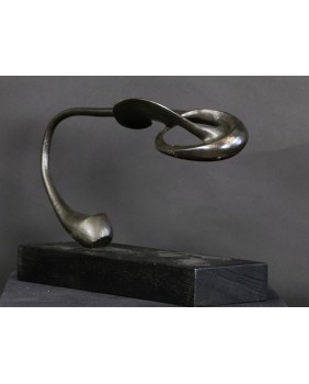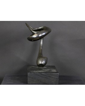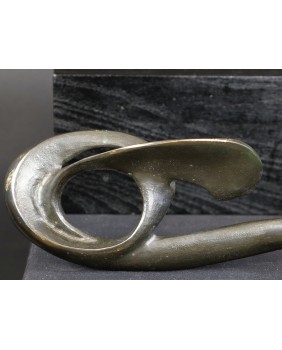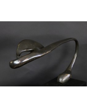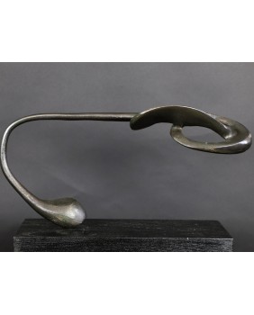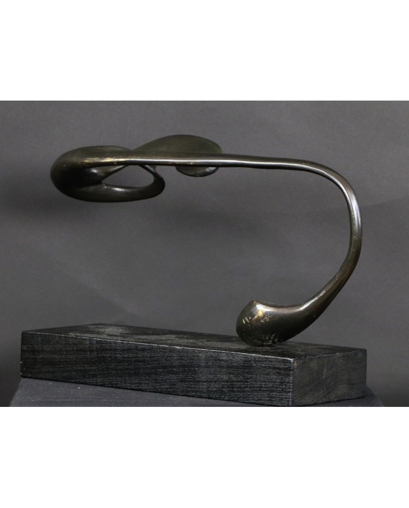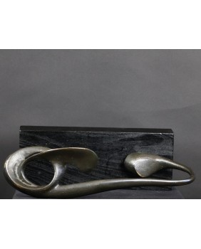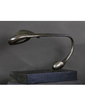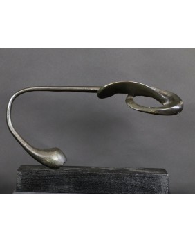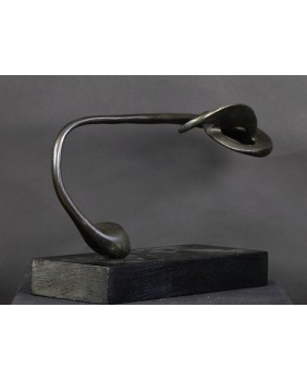 Rzeźbę, którą oferuję zdobyłem w wyniku wymiany, na giełdzie kolekcjonerskiej w Poznaniu. To jedna z najbardziej rozbudowanych form geometrycznych Rafalika, jakie miałem okazję oglądać. I ciekawa, bo kompozycja jest pozioma, co dość rzadko zdarza się u tego artysty. Natomiast typowa jest idea rzeźby. Według mojej interpretacji dzieło zamyka w geometrycznej, matematycznej formule motyw roślinny.