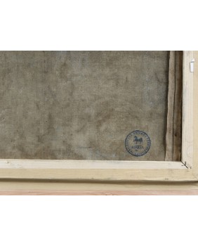 Obraz wykonany w technice olejnej. Liczne spękania farby. Niemniej jednak nadaje się do powieszenia na ścianie bez renowacji. Wymiar łącznie z ramą 83 na 66 cm.