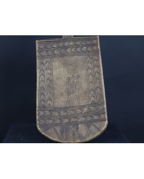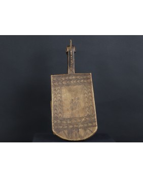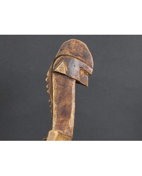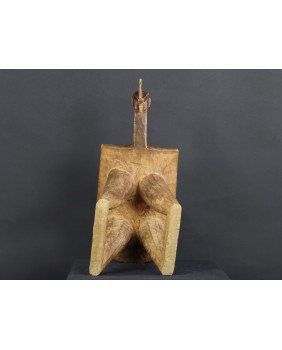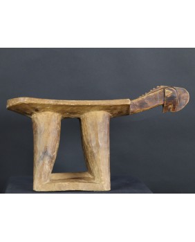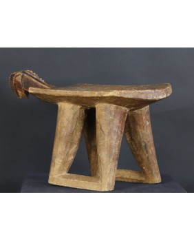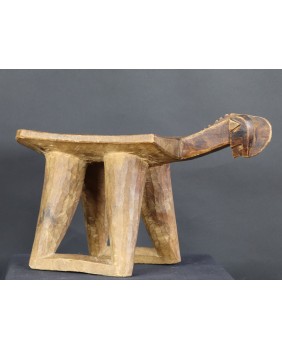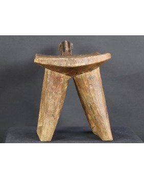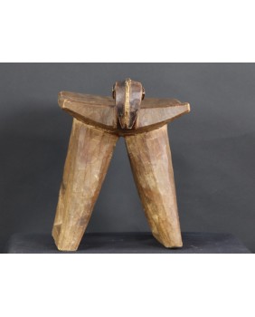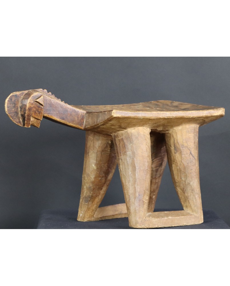 Stołek, który oferuję, pojawia się w literaturze poświęconej sztuce afrykańskiej w kilku nieco odmiennych wersjach. Czasem nogi stołka to dwie proste, szerokie deski, czasem łączą je na dole poziome poprzeczki. Te niewielkie stołki były wykorzystywane do prac gospodarskich. Są pochodną koczowniczego stołka podróżnego, wieszanego na ramieniu, zabieranego przez członków plemienia w długie wędrówki.