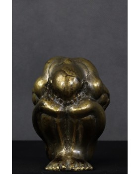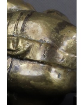 Oferowana figurka jest stara. Należy niewątpliwie do pamiątkarskich przedstawień Buddy i powstała zapewne w rzemieślniczym warsztacie jakich setki funkcjonują w Azji. Ciekawostką jest, że była srebrzona. Ma z tyłu nabity numer bądź datę powstania „1934”.