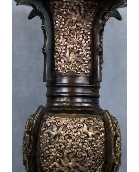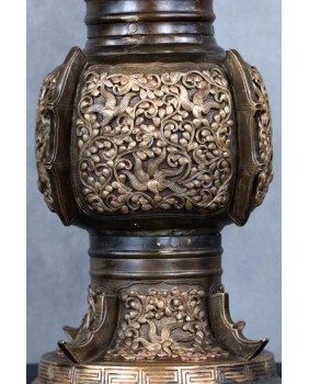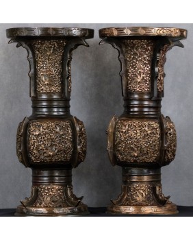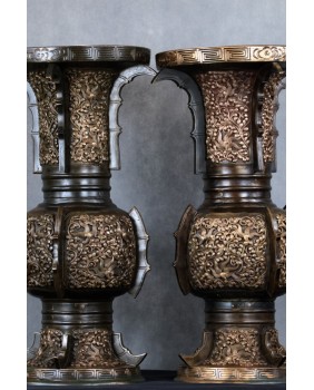 Czas powstania tych dużych, efektownych chińskich wazonów jest trudny do precyzyjnego określenia. Równie dobrze mogły powstać w XIX jaki w XX wieku. Liczne naprawy, nie zawsze precyzyjnie wykonane, ślady farby, którą kiedyś były przemalowane, tandetne nity, których nikt nie starał się ukryć świadczą, że wazony przechodziły różne koleje losu, były intensywnie używane. Musiał temu towarzyszyć upływający czas.