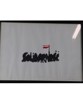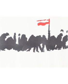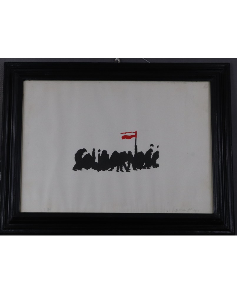 Grafika, którą oferuję pochodzi z cyklu „Znaczki polskie”, powtórzonego w kilku edycjach w latach osiemdziesiątych. „Dostrzegam tłum ludzi, nie zawsze zgodny, czasem nawet swarliwy, mała improwizacja na temat tego co się może stać społeczeństwu, gdy zgody nie stanie”. Tak Sobocki mówił o przesłaniu cyklu „Znaczki polskie”. Ostrzegał także, że „ w takim przypadku wszystko pójdzie w świecy dym i kadzidło-jakże ulubioną przez Polaków Martyrologię”.
