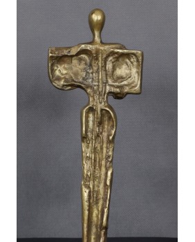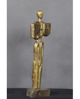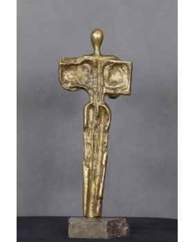 Rzeźba jest bardzo charakterystyczna dla tego artysty. Wysoka, strzelista, uproszczona postać, w górną część której, wpisany jest prostokąt, na którym artysta przedstawia rzeczy, symbole w danym przypadku ważne.