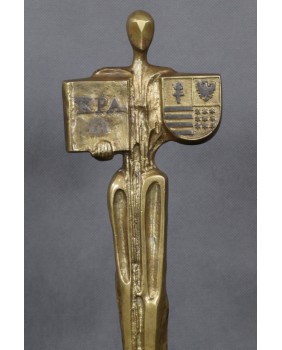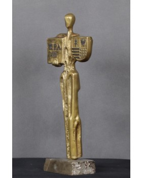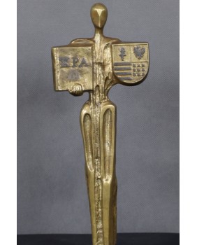Rzeźba, którą oferuję, jest jak sądzę statuetką nagrodową. Niestety nie udało mi się jej zidentyfikować. Litery KPA mogą odnosić się do Kodeksu Postępowania Administracyjnego, ale to tylko moje domysły. Równie dobrze K może odnosić się do jakiegokolwiek konkursu.
