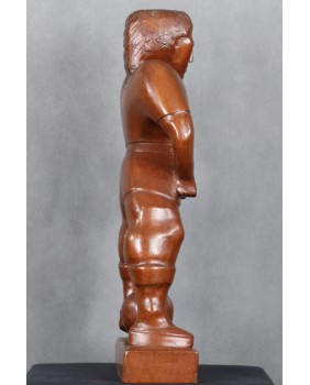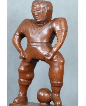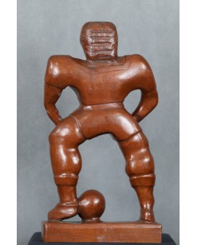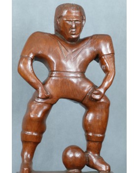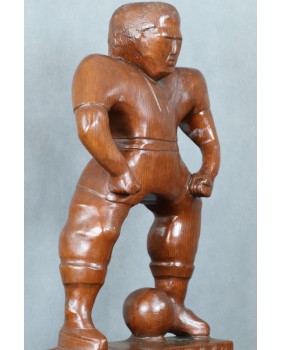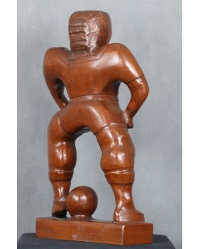 Trochę się wahałem przypisując rzeźbę nurtowi Art Brut, głównie z powodu sportowej tematyki. Z drugiej strony należy pamiętać, że rzeźba naiwna przynajmniej ta dawna, bardzo często portretowała powszechnie czczone postacie. Myślę tu o postaciach świętych. A czym innym w XX wieku jest znany piłkarz ? Idolem potrafiącym skupić zainteresowanie i uwielbienie milionów ludzi. Współczesnym „ świętym”.
