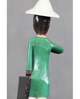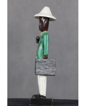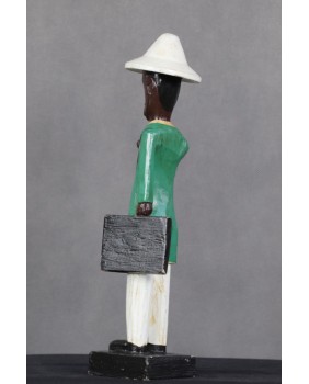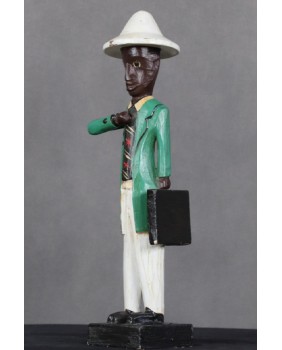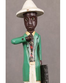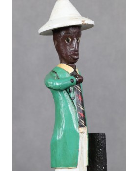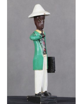 I głównie o to w tej rzeźbie chodzi. O prestiż, symbol zamożności podkreślający status społeczny. Korkowy hełm wzorzysty krawat, duży zegarek, europejski strój. Wszystkie te przejęte od białego człowieka atrybuty, miały podkreślać nową sytuację w jakiej znaleźli się bogaci, rdzenni mieszkańcy Afryki. Nowe elity neokolonialnego społeczeństwa.