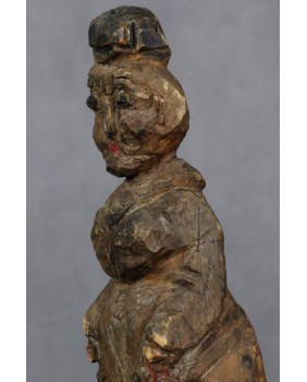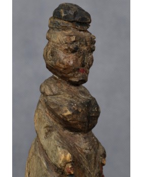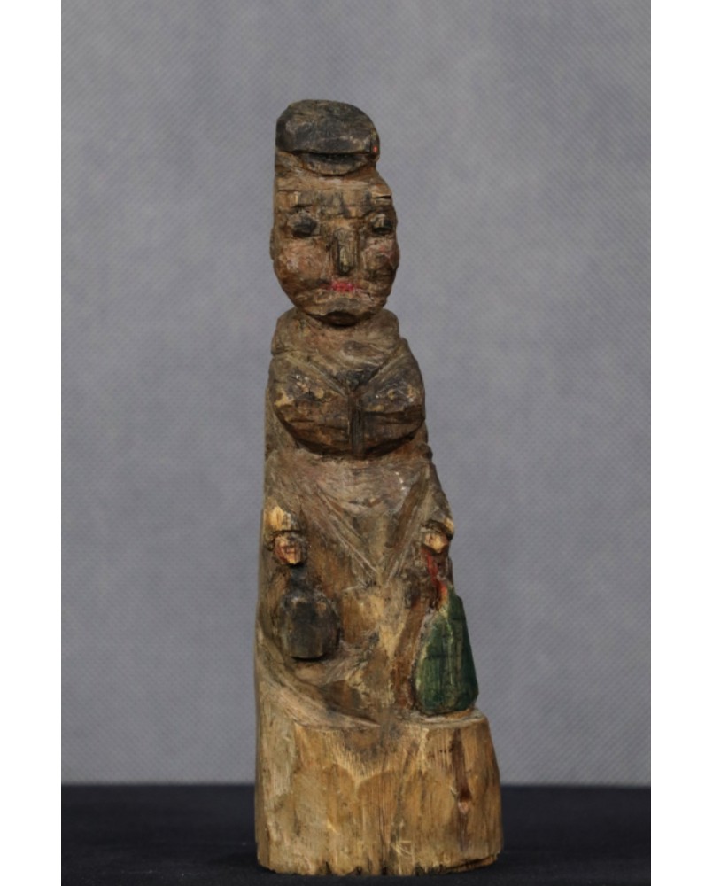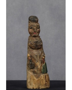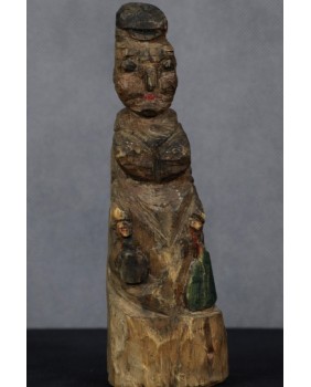 Powiedzieć o tej rzeźbie, że jest prymitywna to wyraz kurtuazji wobec jej autora. Ta rzeźba jest ledwie wydłubana w kawałku drewna. Widać mozolne zmagania niewprawnej dłoni z oporną materią. Art Brut w czystej postaci, gdzie instynkt i spontaniczny akt twórczy stawiany jest ponad wszystkimi kanonami kultury.