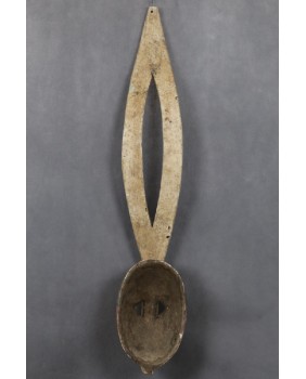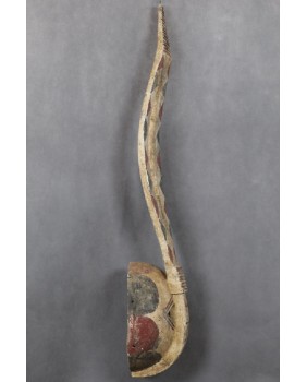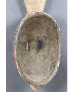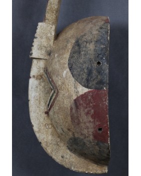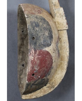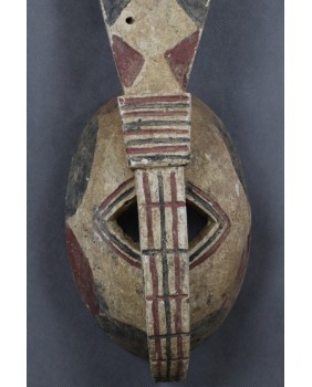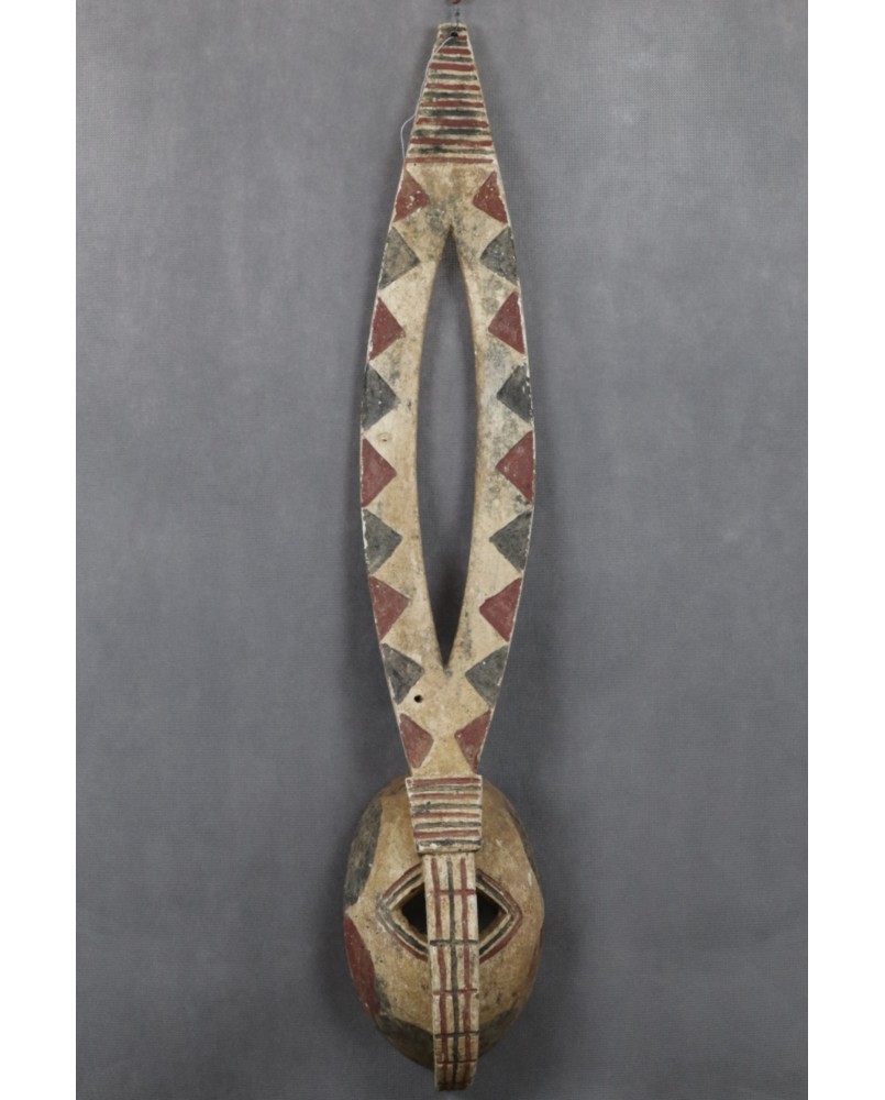 Zoomorficzna maska przedstawiająca zapewne królika. Maski Mossi są charakterystyczne i stosunkowo łatwo identyfikować wśród innych afrykańskich masek. Zwykle są polichromowane trzema kolorami. Czerwonym, białym i czarnym. Cechami wspólnymi tych masek są także proste motywy geometryczne użyte do ich zdobienia i faktura. Także dysproporcja między niewielką częścią „twarzową” a długim pionowym elementem wyróżnia maski Mossi wśród innych.