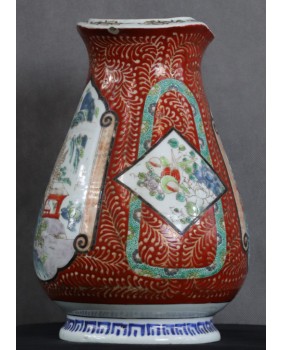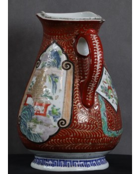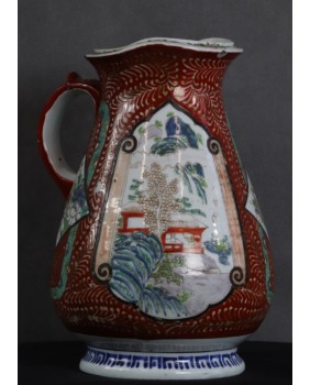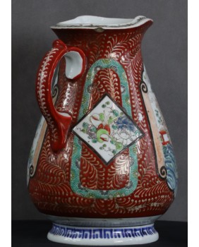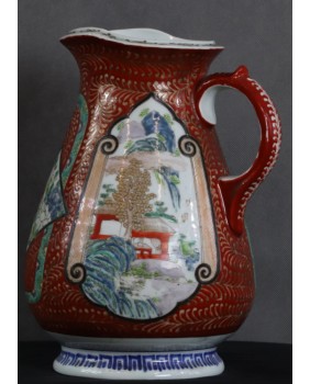 Oferowany dzban jest moim zdaniem przykładem porcelany produkowanej na eksport do Europy. Więcej nawet, jego nietypowy dla Japonii kształt powstał pod konkretne zamówienie, prawdopodobnie na podstawie dostarczonego wzoru.