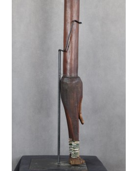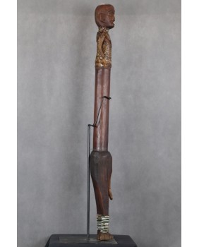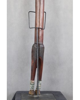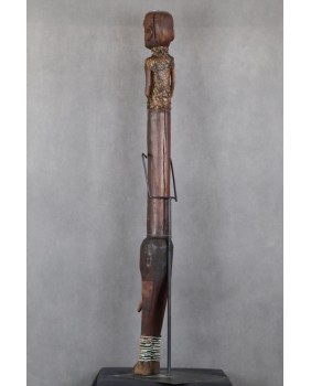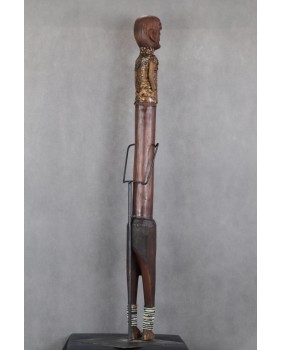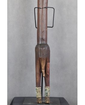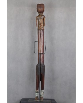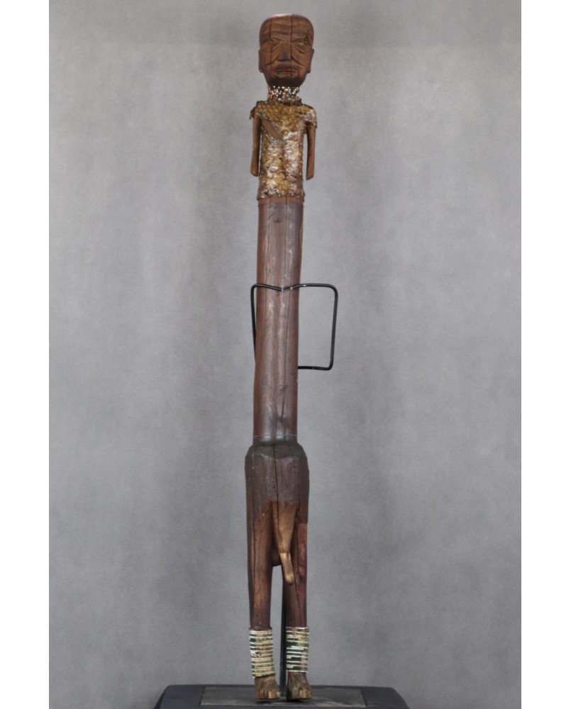 Rzeźby Nyamwezi są bardzo rzadkie. Rzeźba, którą oferuję była niestety naprawiana. Brak jej też opaski ze skóry przysłaniającej genitalia. Mimo wszystko to prawdziwa gratka dla kolekcjonerów.