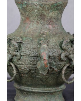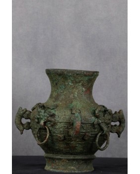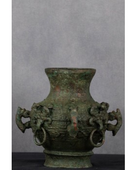 Stylistycznie naczynie najbardziej przypomina wyroby z brązu z dynastii Zhou (VIII-VII wiek p.n.e), choć bywa często, że produkowane w XX wieku brązy są kompilacją motywów zdobniczych z różnych epok. Naczynie ma 16 cm wysokości. Średnica dna naczynia ma 8 cm, średnica jego góry to 8,5 cm. Szerokość brzuśca wynosi 18 cm.