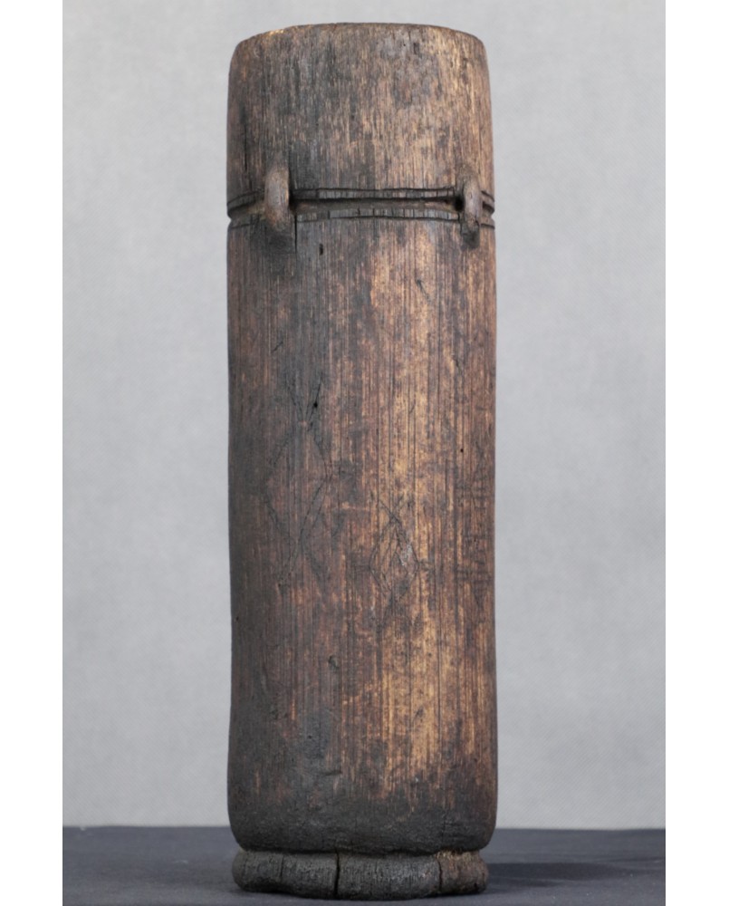 Etnicznie przypisałbym pojemnik Dayakom ewentualnie społeczności Batak. Na pewno powstał na jednej z indonezyjskich wysp. Stawiam na Borneo bądź Sumatrę.