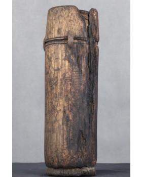 Trudno dziś dociec do czego wykorzystywano ten pojemnik. Nie sądzę, żeby służył do przechowywania betelu. Służące temu pojemniki były zdecydowanie mniejsze. Mógł być własnością szamana a wówczas przechowywano w nim zioła przynoszące ulgę w chorobach. Ewentualnie magiczne mieszanki, których recepturę znał jedynie szaman.