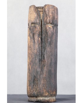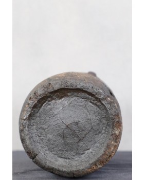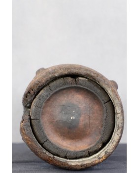 Jest jeszcze jedna wersja przeznaczenia pojemnika. To rodzaj instrumentu muzycznego, grzechotki czy bębenka do wybijania rytmu. Wówczas też należałby do szamana. W środku coś grzechoce. Niestety, widać że pojemnik został częściowo zniszczony przez ogień. Nie próbowałem go na siłę otworzyć aby zajrzeć do środka. Nie zachowały się też rzemienie służące do przenoszenia.