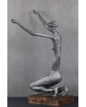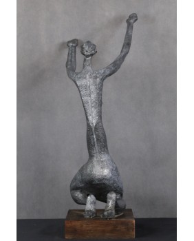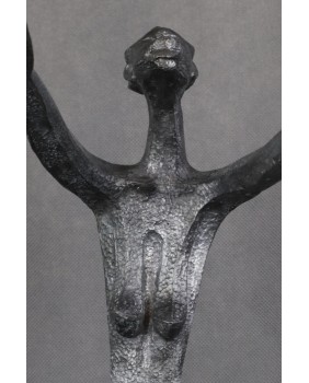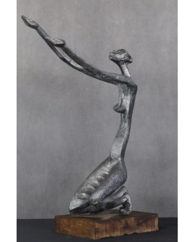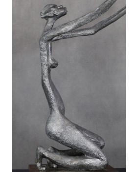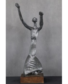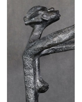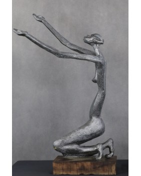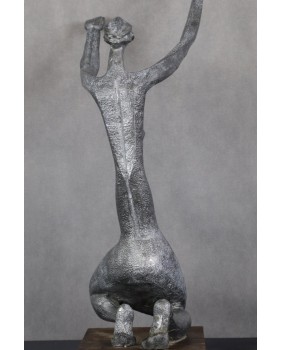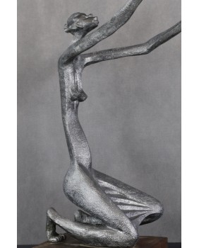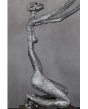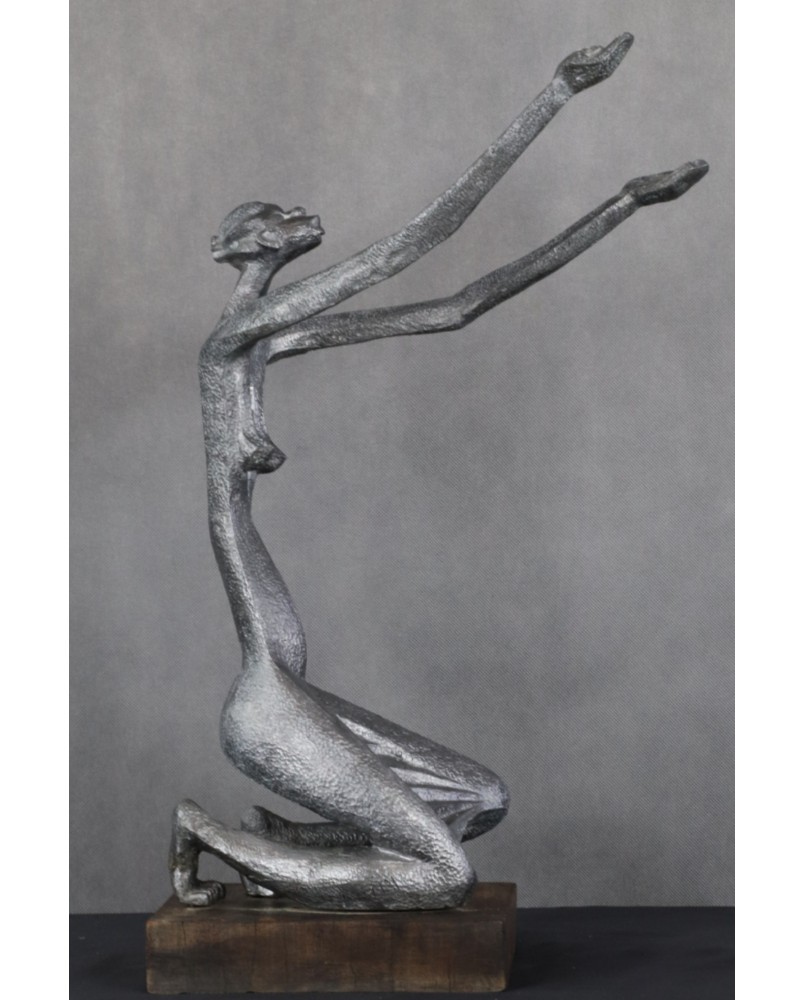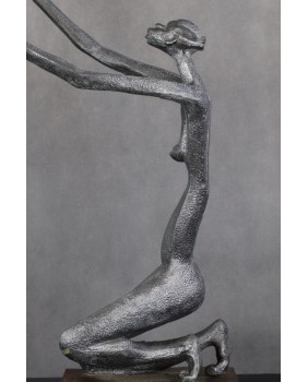 Według mojej interpretacji rzeźba przedstawia modlitwę czy raczej błaganie o deszcz. Nawiązuje do starych plemiennych rzeźb gdzie wyciągnięte ręce zdecydowanie dominują na postaci i decydują o jej wymowie. Dobrym przykładem będzie tu sztuka Dogonów czy Lobi. W tym przypadku wystarczy spojrzeć na anatomiczne proporcje głowy afrykańskiej kobiety do jej wyciągniętych rąk. Ciekawa jest też głowa i postać kobiety o karykaturalnie podkreślonych cechach czarnej rasy.