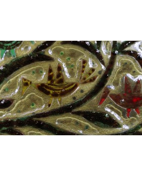 Prostota , ekspresja, oszczędność. W tej pracy najsilniej widać związek artysty z regionem. Przynajmniej ja tak to widzę. Dostrzegam tu echa sztuki ludowej, zakopiańskiej szkoły w najlepszym jej wydaniu. Odpowiadają tej sztuce użyte kolory, niemal odpustowe i ptaki ciężkie, nieporadne rodem z naiwnego rysunku dziecka. Myślę, że Bielski robił ze szkłem dokładnie to co chciał. Potrafił uzyskać wszystkie zamierzone efekty. Wymiar 71 na 33 cm.