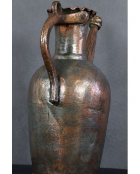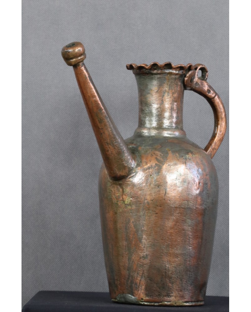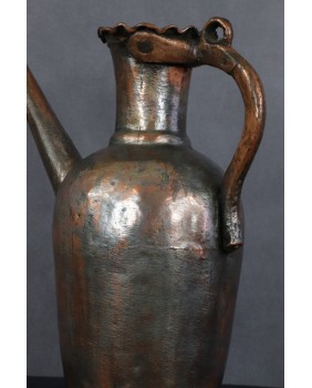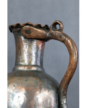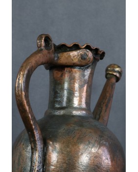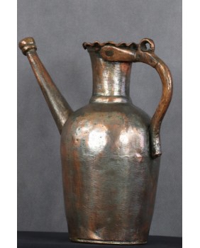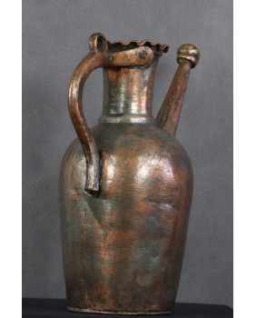 Podobne dzbany, czasem określane też mianem konewek, występują na terenach dawnej Persji i Turcji. Przedmiot jest niewątpliwie stary. Przynajmniej XIX-wieczny. Wykonany został tradycyjnymi rzemieślniczymi metodami. Był niegdyś pobielony cyną. Może szkoda, że poprzedni właściciel zdecydował się dzban nadmiernie wyczyścić. Niestety taki los spotyka większość miedzianych naczyń dostępnych na rynku.