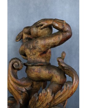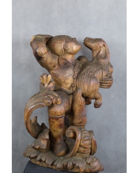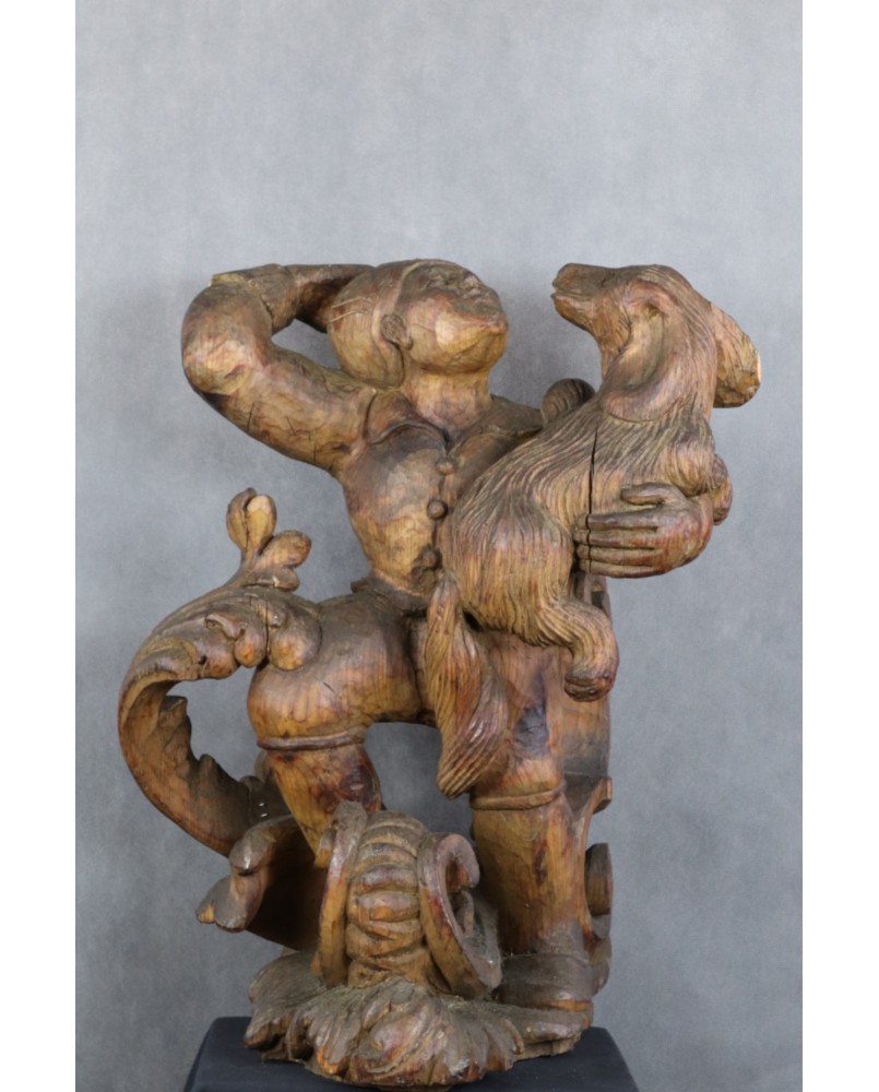 Może to głupie ale czasem zdarza mi się kupić przedmiot ponieważ nie radzę sobie z jego identyfikacją. Ta rzeźba zaciekawiła mnie rzadko spotykanym tematem, rozbudowanym barokowym sztafażem i egzotycznym stylem.