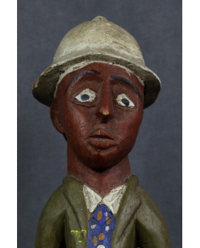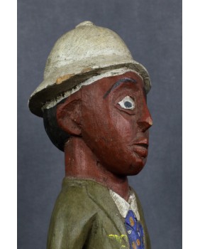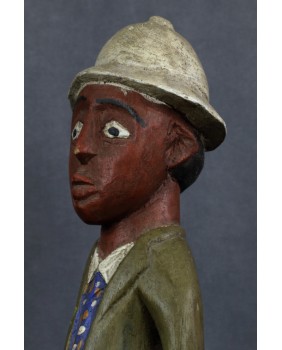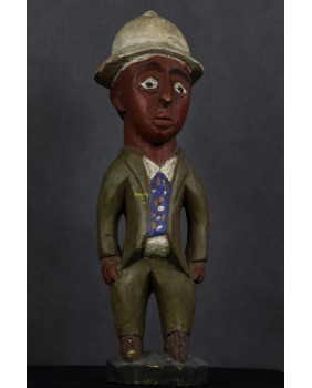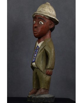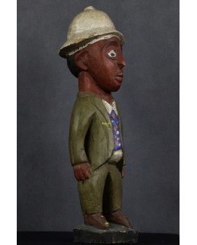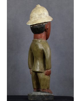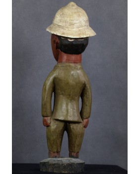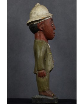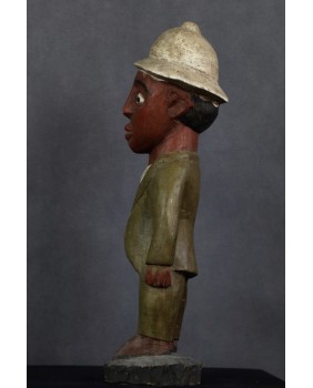 Rzeźba, którą oferuję, należy do wyodrębnionego przez badaczy nurtu sztuki kolonialnej. Ma być odpowiedzią artystów pochodzących z Afryki na kolonizację i kontakt z zachodnią cywilizacją, na traumę niewolnictwa. Rzeźby te przedstawiają zwykle rdzennych mieszkańców Afryki w europejskich strojach, korkowych hełmach czy mundurach wojsk kolonialnych. W rzeźbach tego typu mniej istotne jest etniczne miejsce gdzie powstała, dużo istotniejsze byłoby poznanie nazwiska jej twórcy. Niestety do powszechnej świadomości przebiło się ich naprawdę niewielu zgodnie z dominującym przeświadczeniem, że sztuka afrykańska jest anonimowa.