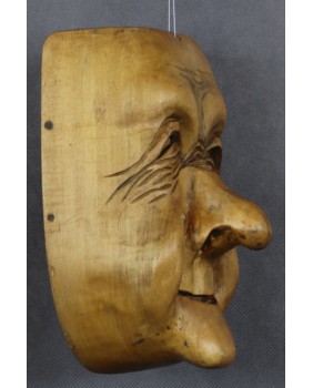 Prawdę powiedziawszy kupując maskę miałem cień nadziei, że jest wzorowana na maskach japońskiego teatru Noh. Dokładne oględziny przekonały mnie, że maska powstała w Europie. Żaden japoński rzemieślnik tworzący teatralne maski, nawet te przeznaczone tylko do sprzedaży nie zrobiłby tak prymitywnie zmarszczek.