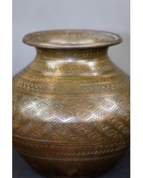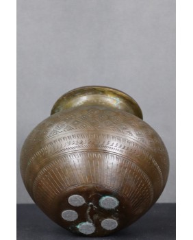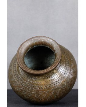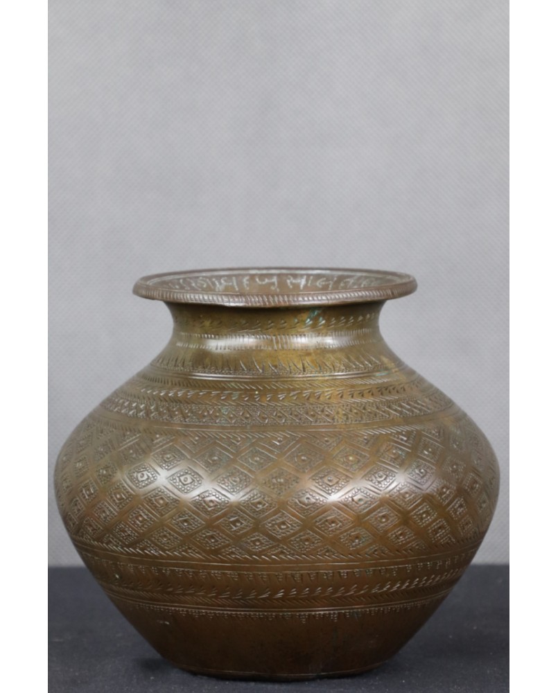 Naczynie, które oferuję nie ma nic wsoólnego z wytwarzanymi masowo, przez indyjskich rzemieślników, mosiężnymi dzbankami. To rytualne naczynie na świętą wodę. Wykorzystywaną w obrzędach oczyszczania. Podobne naczynia były używane zarówno w religii hinduistycznej jak i w islamie. Hindusi wodą za świętej rzeki Ganges oddawani cześć słońcu, podlewali bazylię Tulsi mającą zapewnić bogactwo, spryskiwali swe domostwa.