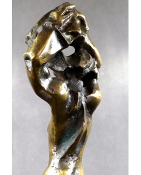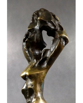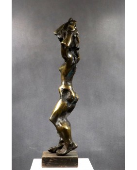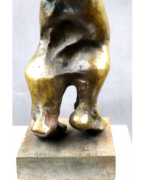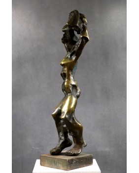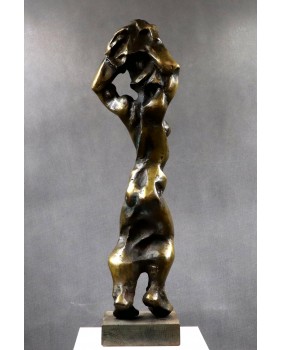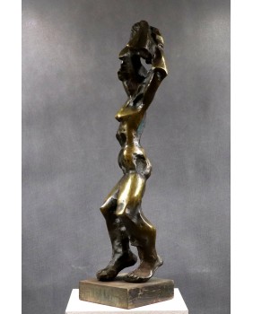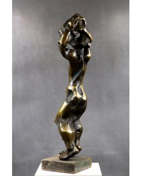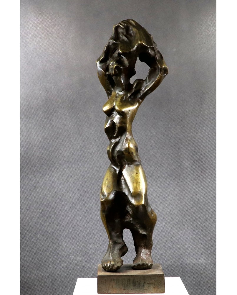 Rzeźbę przedstawiającą według mnie rozbierającą się kobietę kupiłem kilka lat temu na targach antykwarycznych w Le Mans. Jest jedną z większych w mojej ofercie. Ma 75 cm. wysokości. To pełny odlew z brązu jest więc bardzo ciężka. Stoi na drewnianej podstawie o wymiarach 18 na 18 na 5 cm. Jest sygnowana inicjałami wyciętymi bezpośrednio na rzeźbie cyrylicą. Można na tej podstawie sądzić, że to jedna z wcześniejszych rzeźb Petara. Od 2003 roku artysta sygnuje swe prace „ Adrago”. Robi to by uczcić pamięć swego zmarłego syna.