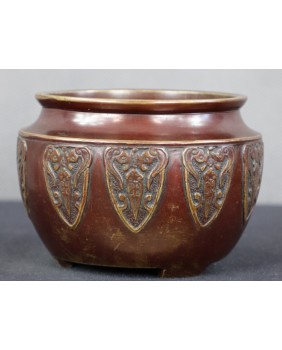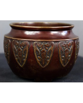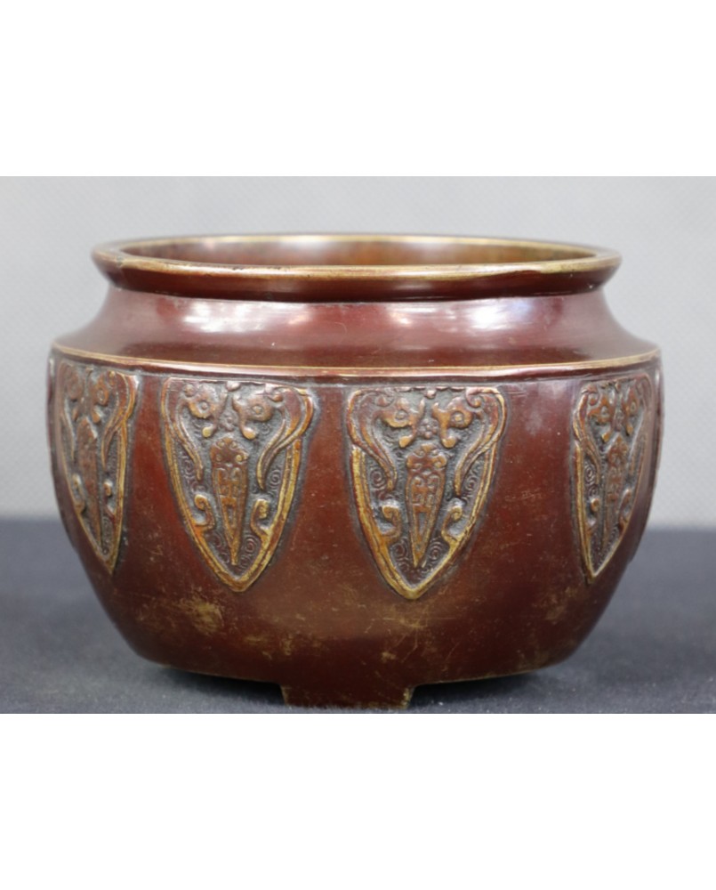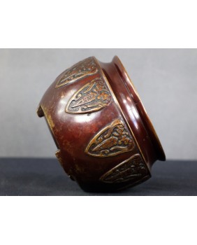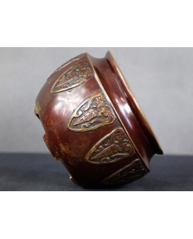 Tak jest w przypadku tego niewielkiego naczynia. Motyw zdobniczy przypomina dekoracje odnajdywane na archaicznych chińskich brązach dynastii Zhou. Forma naczynia, kształt wskazywałyby jednak na Japonię. Brak konkretnych znaków wytwórcy skazuje mnie na spekulację. Opisałem miseczkę jako wytworzoną w Japonii ponieważ znalazłem potwierdzenie w sieci a także tak podpowiedziała mi intuicja.